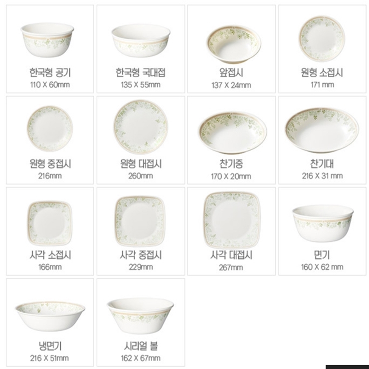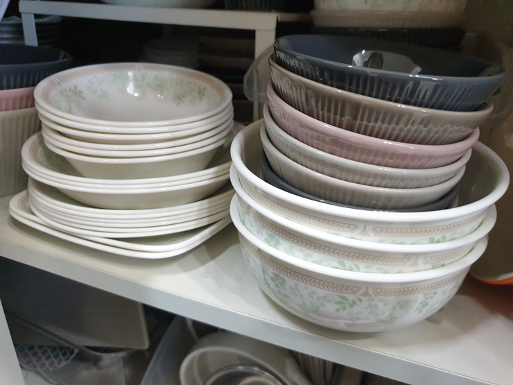 특히 밥공기와 대접은 전 디자인들보다 사이즈가 작아져서 더 실용적이었어요.(제가 사용하던건 사이즈가 제법 큰 오래된 디자인었어요.) 한국형으로 따로 만들어내는 밥공기와 대접이지요. 자주 사용하는 그릇들은 넉넉하게 갖추는 게 좋기 때문에 2개씩 여유 있어서 설령 깨진다고 해도 부족하지 않습니다.