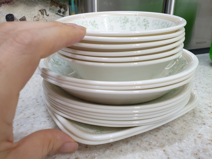 오늘은 4인 가족에게 알맞은 코렐 6인 세트 소개합니다. 4인 가족인데 왜 6인 세트냐 싶겠지만 세트로 그릇을 장만할 때 가족수에 딱 맞추기보다는 한 단계 여유 있게 준비하는 게 좋다는 걸 써보니 알겠더라고요. 살림 경력 나름 20년 차이다 보니 세트 그릇 장만 여러 번 해보았습니다. 코렐도 2번째 구매 입니다. 제법 튼튼하다는 코렐도 오래 사용하다 보니 실수로 깨트리기도 하더라고요. 그래도 다른 그릇에 비하면 사용빈도에 비교해서 오랫동안 사용하는 그릇인 건 맞습니다. 그래서 꼭 하나만 세트로 장만해야겠다 싶을 땐 코렐 추천합니다. 데일리 그릇으로는 이만한 게 없는 것 같습니다.
